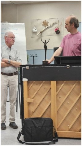 De voorzitter memoreerde nog dat als in de toekomst Maurice op de vrije maandagavond thuis zit en in gedachte naar onze blijvende herinnering kijkt dan denkt hij, wat was het toch fijn om dirigent van Orpheus te zijn.